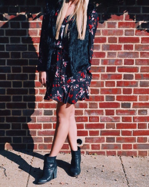 Below, take a quick peak at our styling of a floral Parker dress paired with a black fur vest and…these Rag and Bone booties that make our hearts pitter patter!