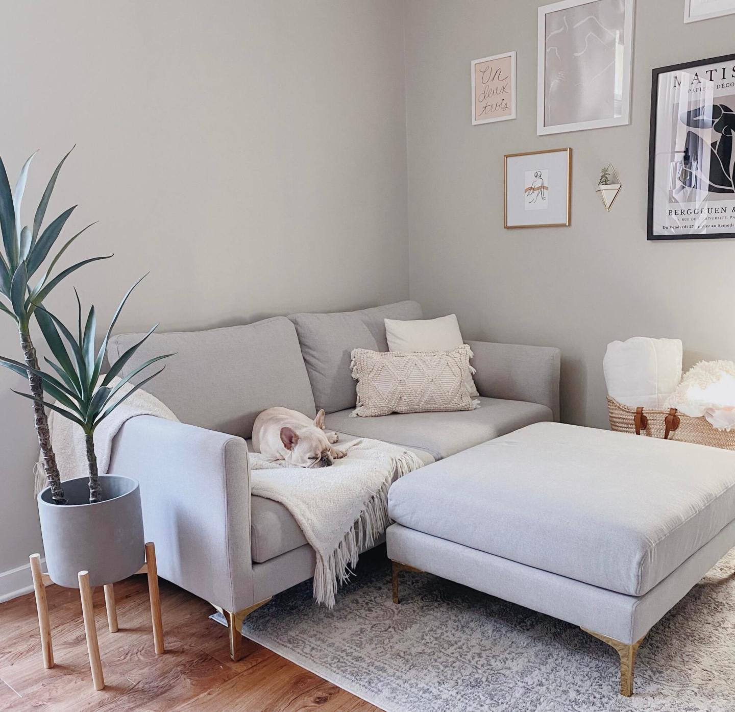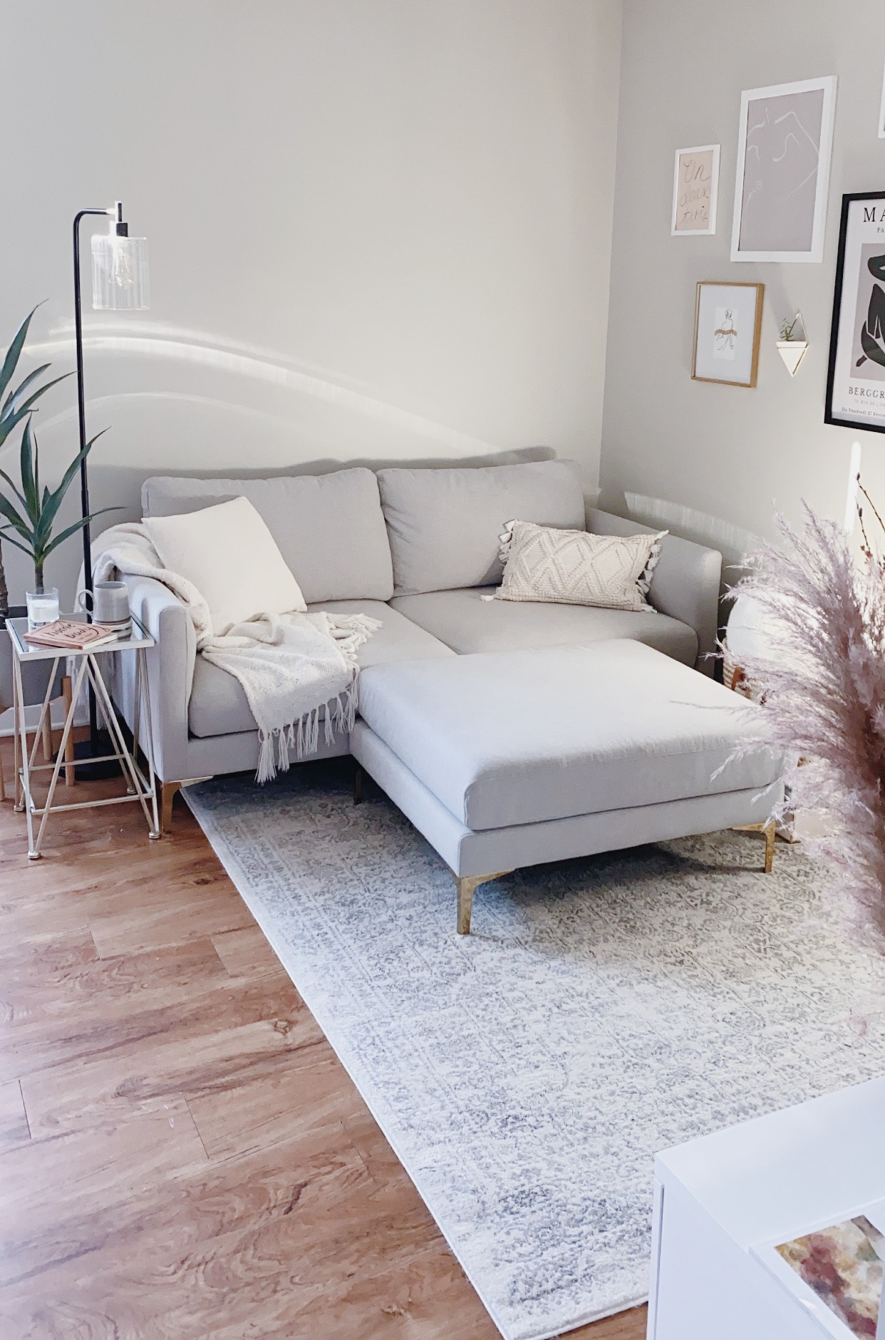 My customer service experience with Castlery was exceptional. I love that you are able to receive up to 3 swatches of fabric for free so you can see and feel the different materials. It was so fun to customize my sofa by selecting the fabric and the finish on the legs, too. I chose the Dove Gray from their Surro Collection, a 100% polyester fabric that is soft and velvety to the touch (and easy to clean!). For the legs, I picked the beautiful brass option, which I’m so glad I did – they are so chic! From the moment I placed my order, to the prompt and seamless delivery experience, and finally the simple assembly of the Loveseat and Ottoman, it was all such an easy and pleasant experience thanks to Castlery.