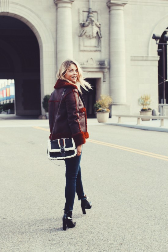 Katie in Longchamp Ready-To-Wear Jacket with the Longchamp Amazone handbag